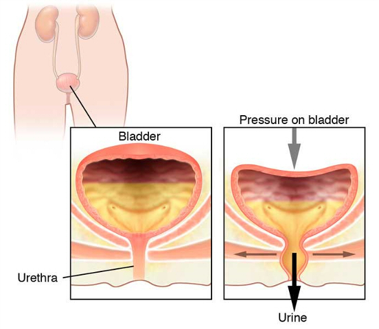 The bladder is the organ which stores urine produced by the kidneys. It is a muscle in the shape of a bag which can hold around 500 millilitres of urine. Most people start feeling their bladder is filling when it is half full. In order to empty the bladder, you have to be able to relax.